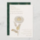 Opulent gilded floral stem and botanical foliage, wedding invitation with light ivory beige and emerald green background colours and coordinating beige text. Elegant monochromatic design theme in faux gold and beige.