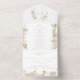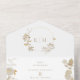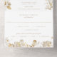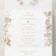Opulent gilded floral and botanical foliage, all in one wedding invitation in white background colour and coordinating beige text. Template provides, invitation, rsvp card and space to personalise each invitation with your guest's name(s) and address. Elegant monochromatic design theme in faux gold and beige.
