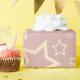 Shiny golden stars of various sizes on a soft pink background, seamless repeat pattern