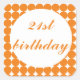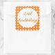 Orange 21st birthday text circles square sticker