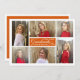 Fresh juicy orange colour background with a narrow white frame with six of your images, stylish and classy graduation announcement. Simply upload six of your favourite senior pictures or digital snapshots for an easy photo grad card. Quality, professional looking design with thin white frame and elegant fancy swirly script writing along with your custom details. This photomontage of the graduate (girl or boy) expresses true appreciation for the determination and accomplishment. All Designs Copyright © www.CustomInvitesOnline.com