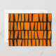 Orange and black african tribal pattern. Orange oddly shaped rectangles and squares with a potterytexture on a black background.