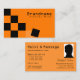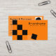 Orange and Black Chessboard Modern with Photo Chic Business Card
