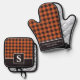 Orange And Black Gingham Plaid Chequered Monogramm Oven Mitt & Pot Holder Set