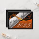 Orange and black graduation card with a diploma and year of graduation on it. The back is a black background with orange lettering for the graduation annoucements.