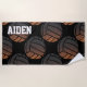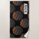 Wording can be left blank and you can enjoy the beach towel as is with the orange and black volleyball design.