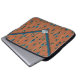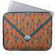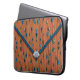 A chic and versatile style statement, the original artwork by ZoeSPEAK on this 15” Laptop Sleeve is done in the style of an envelope clutch bag. It's a pattern looking like ribbed fabric in a burnt orange colour, with spheres emerging through the fabric in shades of yellow orange and aqua blue. The shapes are smudged as if they are falling. The top flap of the purse is bordered by a band of textured blues, with a very thin red orange edge. There is, on the handbag, a bluish silver diamond shaped closure at the tip of the flap. On this is an optional monogram which is set for you to personalise, or delete if you prefer.