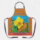 This orange and blue striped floral design All over print Apron is bright and cheery. Donning it will make your day brighter and your cooking tastier. The design consists of a large sunflower that looks up to a blue sky amidst green leaves. It will make you smile and be happy.