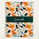 Orange flowers, blue and dark green foliage floral personalised planner.