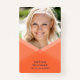 A modern photo badge featuring an orange layered geometric design on the front where you can also add your photo and a blue colour back side. Perfect as an office badge for your staff and also a great way to introduce yourself at meetings or events.