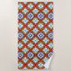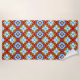 Orange and blue retro tile pattern beach towel