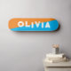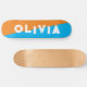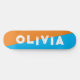 simple orange and blue skateboard for him, for her or for them is your personalized name in a bold funky and grunge distressed lettering. Get the prefect abstract design for a teen birthday or Christmas present. Just write your own name for a custom skateboard.