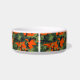 This is a heavy, durable bowl decorated with Tibbies of many colors, the perfect size for hungry/thirsty Tibs. The design is interesting and printing clear.