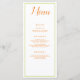 An orange and green fall inspired design, this wedding reception menu features a lovely white background with orange font. Featuring "Menu" written at the top using cursive orange font, all of your information is printed in orange readable font on a white background. Customise as you choose.