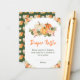 This cute and fun watercolor diaper raffle enclosure card features pumpkins in orange and white with beautiful floral arrangements. The text combines handwritten script and sans serif fonts for a stylish and modern look. This is perfect for an autumn fall baby shower.