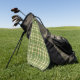 A vibrant golf towel featuring a classic Scottish plaid in bold orange and green, combining timeless style with a touch of dynamic, sporty charm.