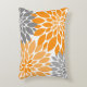 Orange and Grey Chrysanthemums Floral Pattern Decorative Cushion