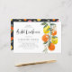 Invite family and friends to your event with this botanical bridal luncheon invitation. It features a watercolour garland of oranges, lemons, orange blossoms and greenery with a matching citrus pattern. Personalise by adding a name, date, time, venue, address and other event details. This citrus bridal luncheon invitation is perfect for summer bridal showers. Matching items are available.