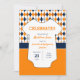 Orange and Navy Blue Argyle Pattern Baby Photo Announcement