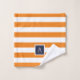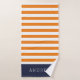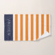 This custom made-to-order bath towel set has a preppy horizontal stripe pattern in navy blue, orange and white. Personalise it with your monogram name and initial or other custom text. Use the design tools to choose any background colours, edit the text fonts and colours or upload your own photos to create a unique custom set of bath towels to match any bathroom decor. The set includes a coordinating bath towel, hand towel and wash cloth or select individual towel sizes as needed.