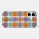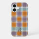 This phone case showcases a stylish plaid pattern in orange, purple, and teal tones, accented with a personalized monogram. Perfect for adding both elegance and individuality to your device.