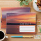 This elegant envelope design features a romantic orange and purple sunset photo background by Destei for a warm, nature-inspired touch. A personalizable text area allows you to include your return address, while the front features a soft white box with space for the recipient’s address. Above it, a gentle message reads “Kindly deliver to,” adding charm to your wedding or event mail. A beautiful envelope choice to match sunset-themed or destination wedding stationery.