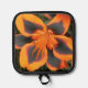 Safely handle baking trays, cookie sheets and muffin tins from the oven with this pot holder with black trim that features the photo image of an orange and dark red, bicolor Asiatic Lily bloom. A lovely, floral design! Select your pot holder backing style.