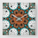 Orange and Teal Green fractal Flower Square Wall Clock