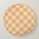 Orange and Unbleached Silk Chequerboard Round Cushion