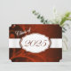 Orange and white graduation invitation with light and dark orange floral and a white ribbon going across showing the year of graduation. The back of the card is orange with white font for people to fill in the graduation announcements.