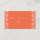 Tangerine tango orange and white damask arabesque floral wedding or special occasion place cards or escort cards. To make changes to the cards, including changes to the font, font colour, or background colour, use the customise option. The size of the card is 3.5" x 2.0" and all that is required are some place card holders if you want to use them. This damask place card will work well for a wedding, birthday, wedding shower, anniversary, or possibly high school graduation celebration as well. Note, these are ordered in batches of minimum 100.