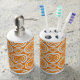 Orange and White Geometric Circles Pattern Soap Dispenser And Toothbrush Holder