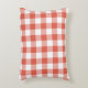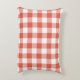 Reddish orange, light orange, and white squares form a bold, buffalo plaid or gingham pattern in this design.