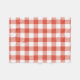 Reddish orange, light orange, and white squares form a bold, buffalo plaid or gingham pattern in this design.