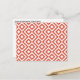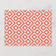 This bold orange and white geometric pattern is an original ornamental design. White meanders angle around orange diamonds containing white diamonds. Orange zigzags provide subtle separation between the winding paths.