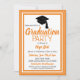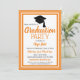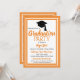 Send out this Orange & White Photo Graduation Party invitation to friends and family to celebrate your high school or college graduate's achievement. Customise it with the grad's name, school, party details, and photo on the back. This charming school spirit invite features white and orange school colours with a feminine script font.