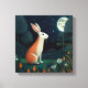 An orange and white rabbit is enjoying the moonlight in a bed of flowers.