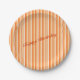 Modern stripes in orange and white, paper plates. The white stripe can be changed to any colour. The happy birthday text can be personalised to suit any special occasion, or event. The text is also removable.