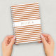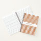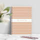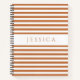 Spiral notebook featuring a personalised name print on a minimalist orange and white striped pattern.