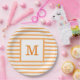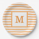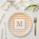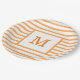 Cute girly simple modern orange and white stripped paper plates with your custom monogram name or initials, for your next special birthday party, office celebration, outdoor barbecue, baby shower or wedding! Made with paper. Customise it with your favourite font and colour to make it your unique paper plate!