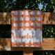 Sport your team colours with this orange and white fleece blanket in a volleyball pattern with wood gym floor overlay. Makes a great personalised gift for a volleyball player, coach, team or fan.