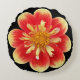 Orange and Yellow Collarette Dahlia Floral Round Cushion