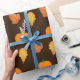 Orange Autumn Leaves and Pumpkins on Brown Craft Wrapping Paper