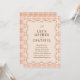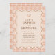 This autumn-inspired design with a light orange plaid pattern can be used for a Friendsgiving or Thanksgiving dinner. It also features the words, "let's gather and be grateful," a wavy border, and tiny bow to complete the look.