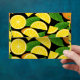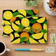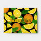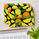 Orange slices and leaves. Seamless pattern. Custom background colour. Custom text.