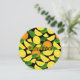 Front side: Orange slices and leaves. Seamless pattern. Custom background colour. Custom text. Back side: Round slice of orange background. Custom text fields for event information.