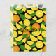 Orange slices and leaves. Seamless pattern. Custom background colour. Custom text.