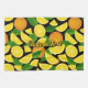 Orange slices and leaves. Seamless pattern. Custom background colour. Custom text.