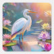 Orange Billed White Heron Fantasy Bird Square Sticker