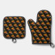 Orange Bird of Paradise Plant Pattern on Black Oven Mitt & Pot Holder Set